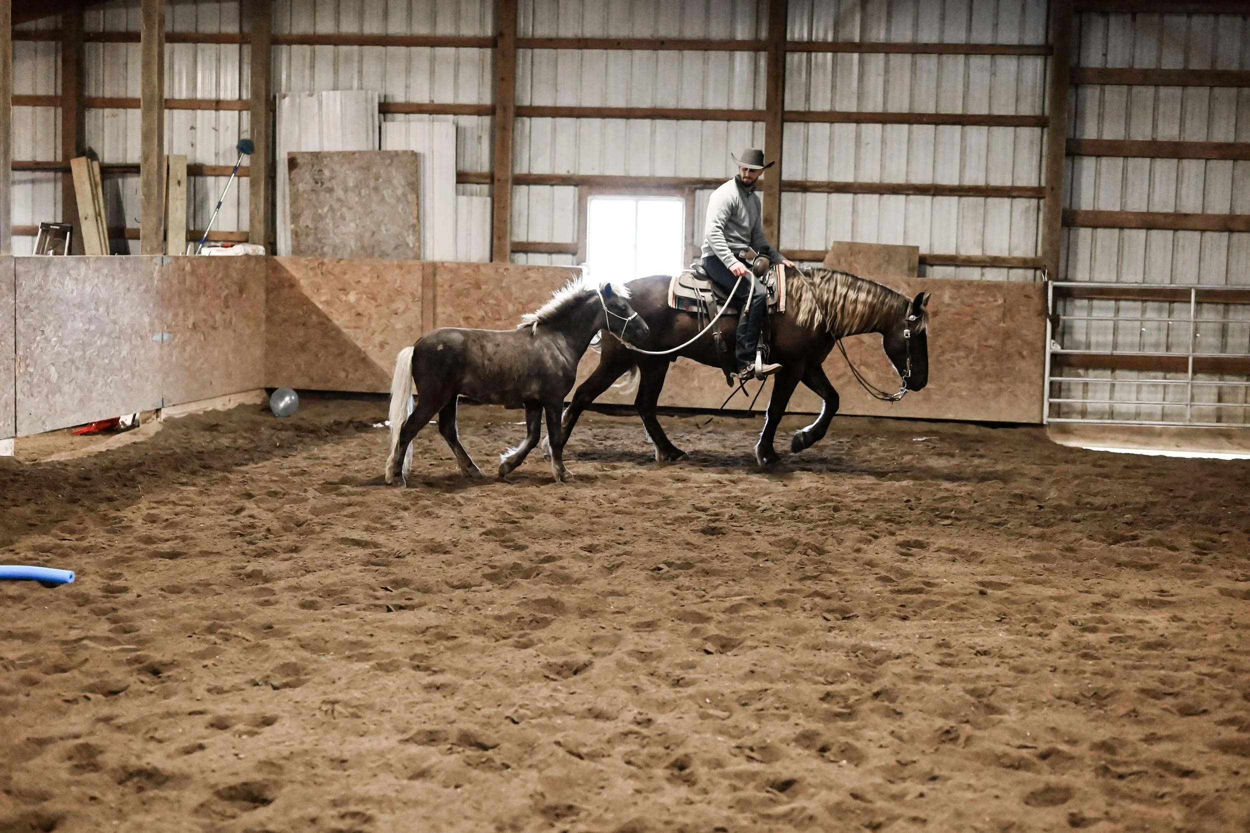 Watch Video! Rare as Hen’s Teeth- Chocolate Dapple Palomino Draft Cross Gelding! Forget about the color, and the disposition on this gelding is just as impressive. Cowboy has been used in the produce patch, does tricks and has been ridden by all levels of riders and experience levels both in the arena and on the trail. Cowboy has seen more experiences in his life than most horses twice his age. Ride him English one day, western the next or take him for a nice, relaxing Sunday drive. He is broke to drive single, and also double in a two-hitch team. Cowboy has been a complete babysitter to have around. The kids have taken him out by themselves back through the woods and hitched him up, and taken him sledding in the winter. He was trail ridden by kids as young as 5 years old, exposing him to deer, road traffic, heavy equipment, turkey and cattle. His go-with-the-flow disposition and willing personality makes our job easy. Cowboy has a nice extended stride at the long trot, or will slow it down for a jog. He has been ridden bridle less and works nicely off your seat and leg cues. Cowboy is the perfect size for a rider with bad knees, as he is easy to get on and off, and stocky enough to carry a wide variety of riders. He rides with the same integrity every time you get on his back. If you are looking for a horse to enjoy, ride in the arena, down the trail, and have a companion- look no further. He is sure-footed outside, carefully placing his feet to take care of his rider in any situation. He has been ridden in metro parks with runners, stallers, dogs, traffic, and handles it all in stride. Cowboy stands quietly on a tie line, cross ties, ground ties, and quiet as a church mouse on the trailer. He gets along great with the other horses in the pasture and has great stall manners. This gelding has been nothing short of a pleasure to work with since he stepped foot on our property. No matter what direction you want to go, this phenomenal gelding will be sure to take you there. He has all the buttons: side pass, turn around, leg yield, but just as easily-point and go. Gentle, flashy and broke, with unlimited potential!
